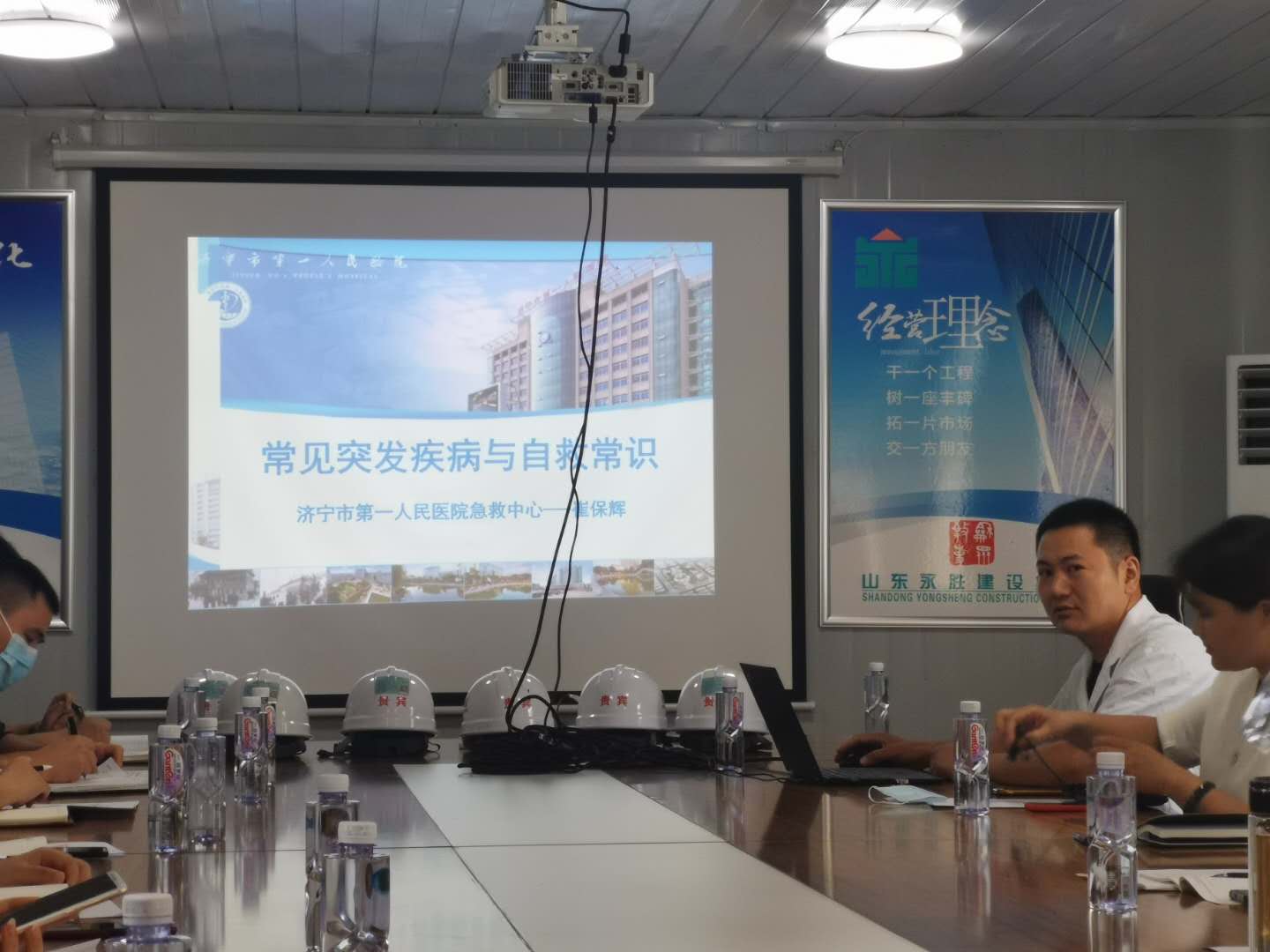 济宁市人力资源和社会保障局综合执法支队二大队大队长张建、劳动关系科科长王焱、工伤保险科科长赵剑参加了本次培训会,参加会议的还有天虹纺织、辰鑫汽车、小松山推、中国重汽、鲁抗医药等公司主要安全管理人员,会议还邀请济宁市第一人民医院急诊科崔?;灾魅尾渭?。首先张建大队长、赵??瞥ぞ透呶绿炱投;ひ约爸耙挡∠喙胤芍督辛私步?,随后崔保辉主任现场讲解了《常见突发疾病与自救常识》,特别讲解了高温中暑预防和紧急处理健康知识,现场演示了心肺复苏等急救技术操作。在场的参会人员都热情的参与到学习中,跟随崔保辉主任现场学习,气氛非常浓厚。