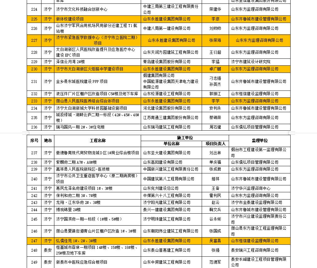 热烈祝贺山东永胜建设集团荣获2021年济宁市安全生产先进单位,其中新体校、市立医院二期、火炬路中学、微山县人民医院、弘儒佳苑等5个在建项目,荣获2021年度省级安全文明标准化工地。